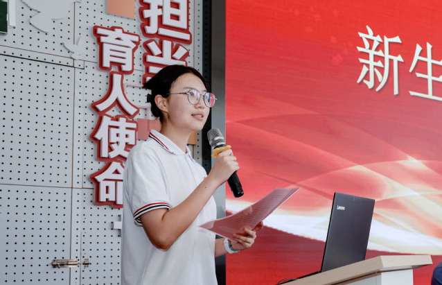 军训的硝烟尚未散尽,新征程的号角已然吹响。结营仪式后,2025 级新生开学典礼在阶梯教室隆重举行,典礼由校团委书记蔡辰年主持。